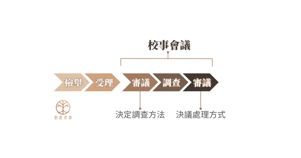 大致的流程如上圖,一些細節無法呈現出來,例如專審會有另外一種由主管機關發動的方式,以及由專審會調查的就只會由專審會進行輔導,完整的校事會議調查程序及因應方式可以參考鄔曙擎律師(樹理律師)的另一篇文章:【校事會議全攻略|調查事由、調查流程、調查因應策略、法律救濟途徑|當學校變法院,如何面對調查訪談?需要請律師嗎?|最完整的校事會議解析】,本篇文章會針對專審會來進行介紹。