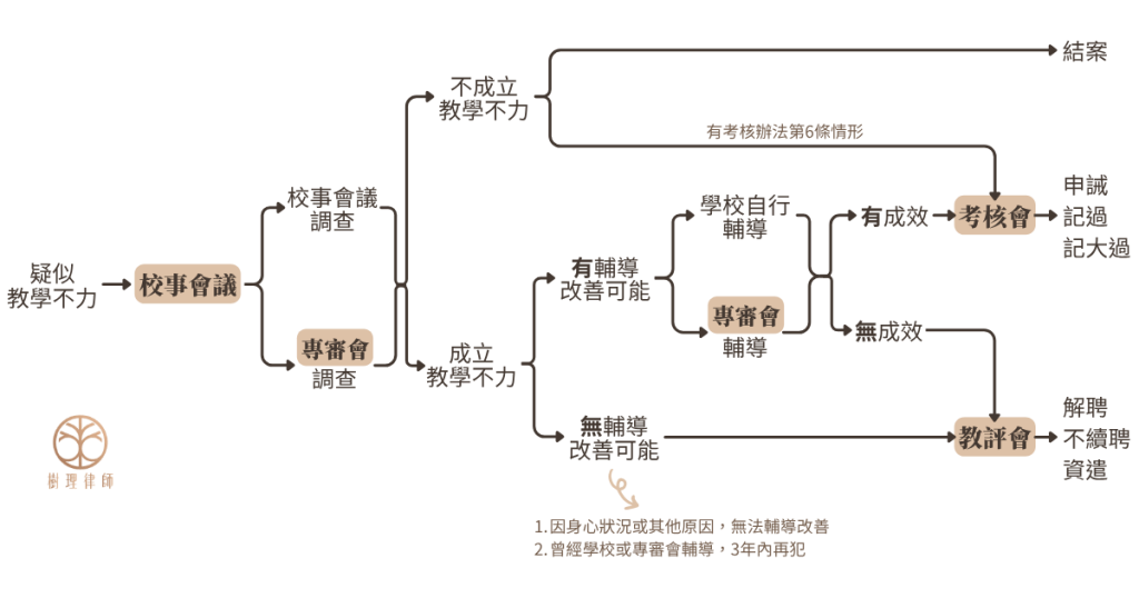 所以老師在提出自己身心狀況相關的診斷證明時要十分小心,避免被認定為無法輔導改善。另外則是有過一次被認定有教學不力情形經過輔導改善有成效,3年內再犯就會失去輔導改善的機會,直接認定為無法輔導改善而移送教評會,要特別注意。